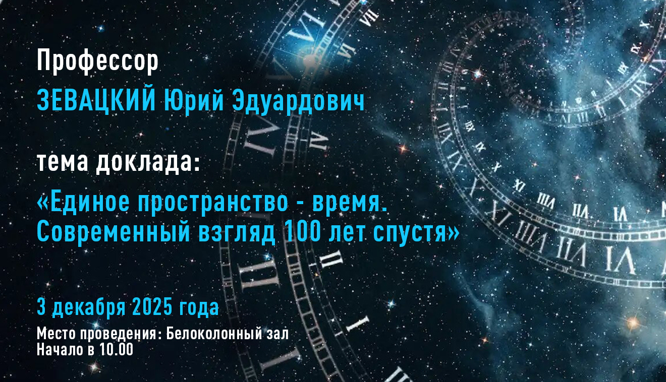 Этот доклад посвящен фундаментальным вопросам науки и призван переосмыслить классические концепции пространства-времени в свете новейших научных данных и достижений, ровно столетие спустя после их первоначального формулирования. Выступление профессора Зевацкого Ю.Э. представляет особый интерес, так как объединяет глубокие теоретические знания с практическим опытом руководителя крупного инновационного предприятия.